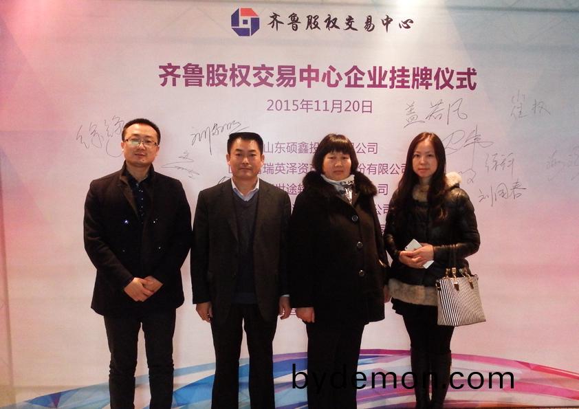 2015年11月20日,安丘博阳机械制造有限公司的董事长、总经理及工作人员在淄博齐鲁股权交易中心参加企业挂牌仪式。