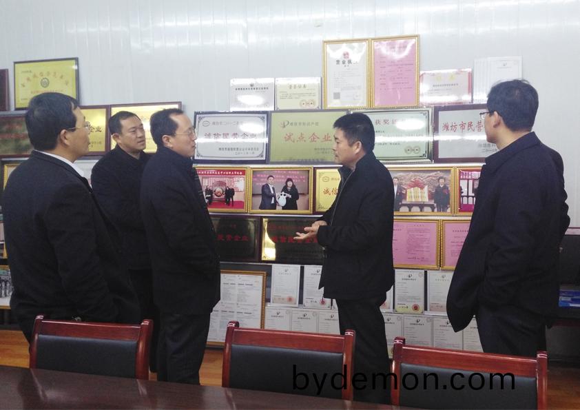 2016年2月19日,安丘市常务副市长张振城来安丘博阳机械进行实地调研和指导工作,受到公司总经理闫吉祥的欢迎和接待。 闫经理向张市长汇报