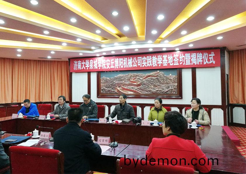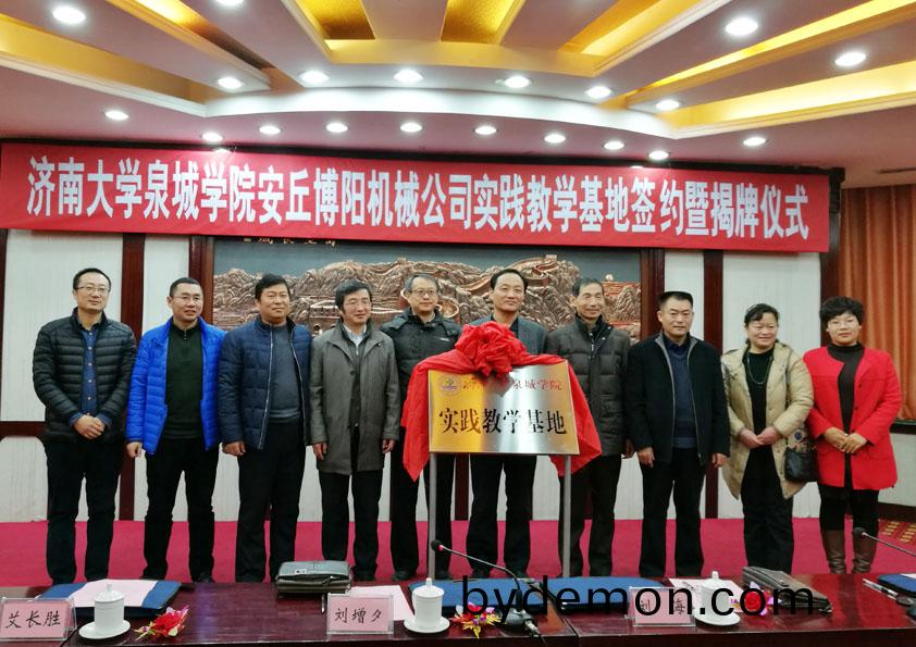 2016年12月30日,济南大学泉城学院与安丘博阳机械公司实践教学基地挂牌仪式隆重举行。泉城学院刘增夕副院长、安丘博阳机械闫吉祥总经理、