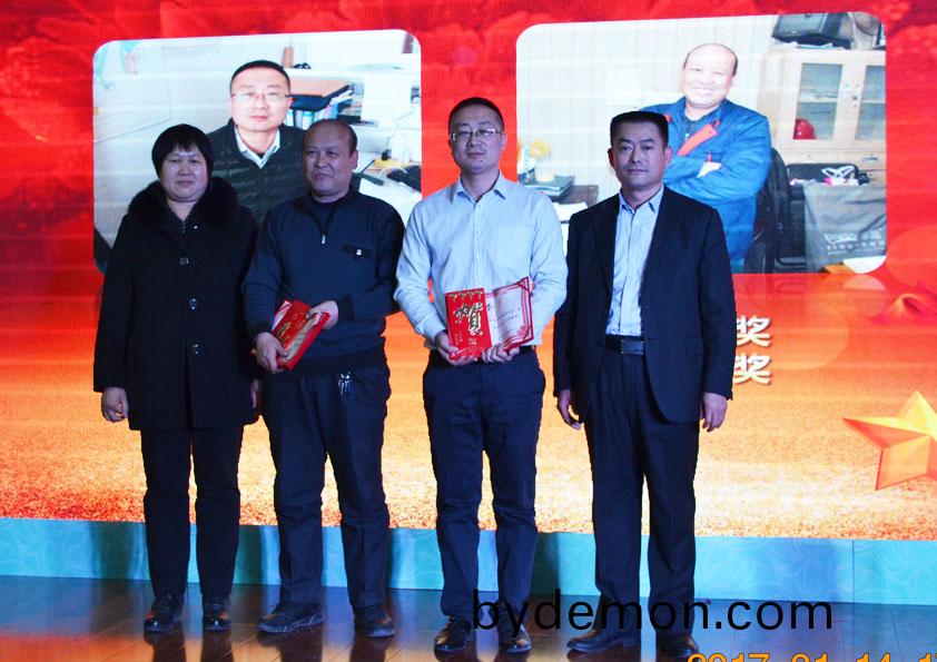 紧接着就是颁奖环节,公司分别对后勤部门、技术和销售部门、生产和售后服务部门等涌现出的工作者和先进个人给予表彰和奖励,并颁发荣誉证书和奖金,肯定成绩的同时也对未来的工作寄予深切厚望。