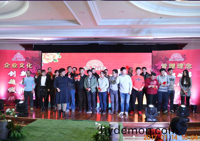此外, 晚会现场精彩绝伦的歌舞表演,美妙动听的歌手演唱,多才多艺的员工家属现艺,也将晚会推向一个又一个高潮。同时,还穿插着激动人心的抽奖活动,三等奖,二等奖,一等奖,特等奖,公司领导与员工间的亲密互动,让彼此之间的心与心更贴近。当然*受瞩目的则是“萌宝走秀”环节,这些可爱的“博阳小家属们”以他们*纯真的一面庆贺本次年会活动的圆满举办,同时也彰显出我博阳机械是充满朝气的发展企业。
