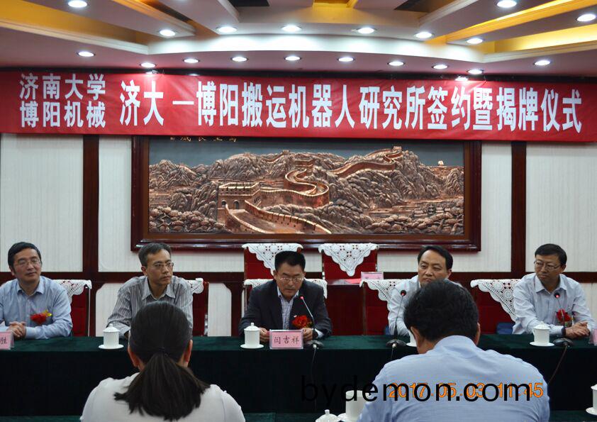 2017年5月3日,济南大学与安丘博阳机械制造有限公司联合成立的济大—博阳搬运机器人研究所签约暨揭牌仪式于安丘市招待所会议厅隆重召开
