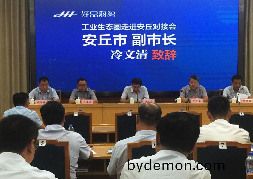 2017年7月27日下午,好品海智工业生态圈走进安丘对接会在安丘市政府举办,安丘市副市长冷文清、海尔海智平台董事长邹兆云、安丘市经信