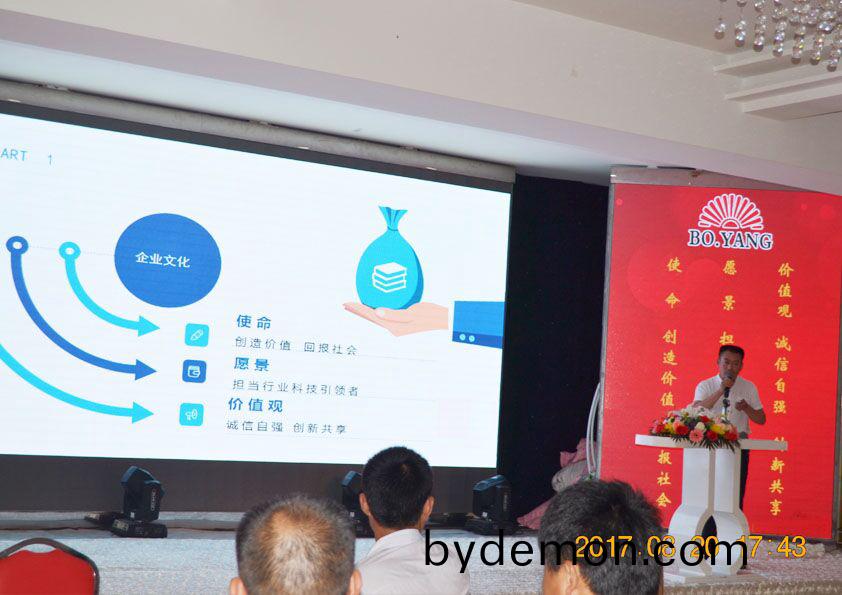 2017年8月20日下午,安丘博阳机械制造有限公司2017年度年中总结会议暨下半年目标达成动员大会在安丘汇泉酒店召开。总经理闫吉祥,副总