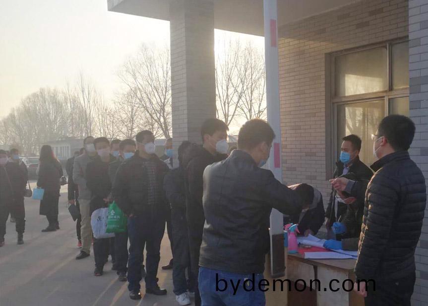 新春伊始,万物复苏。根据安丘市新型guanzhuangbingdu感染的肺炎疫情防控工作指挥部《关于做好复工复产企业疫情防控工作的意见》要求,安丘博阳机械于2020年2月10日(正月十七)正式开工生产。2月10日上午,安丘市市委常委、纪委书记、监委主任王峰贵、石堆镇党委书记王德平一行对公司开工进行检查指导,公司闫吉祥总经理将博阳机械开工前防控物资的准备、工作环境的消毒、人员防控规范管理以及石堆镇政府大力支持等方面进行了汇报。王峰贵书记现场检查后指出,加强新型guanzhuangbingdu防控工作,是企业当前主要任务,要确保广大职工健康安全,同时也对博阳机械能够快速复工表示肯定,企业复工也有助于企业快速稳定发展,从而更好地为本地经济增长做出贡献。开工当日,广大员工严格按照程序要求进行测温、消毒、登记,核查完毕确认符合要求后陆续进入生产及办公区域。班前公司各部门又本着“预防为主,安全第*”的原则做了着重强调,确保职工上班期间的健康安全。