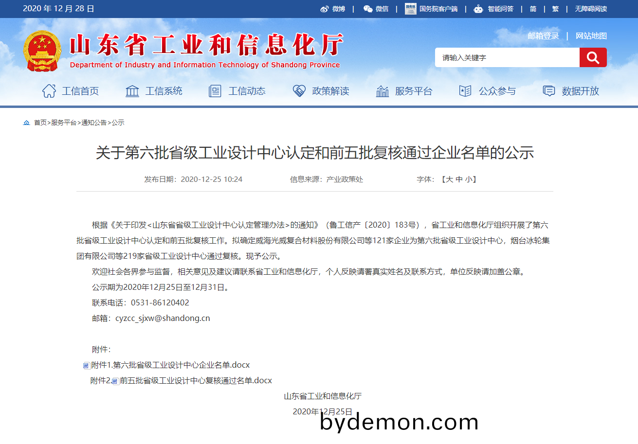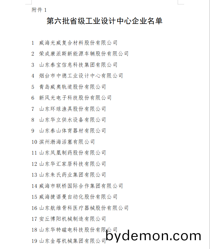 2020年12月25日,省工信厅公布2020年山东省省级工业设计中心名单,安丘博阳机械制造有限公司高端装备工业设计中心成功入选。此次获得山