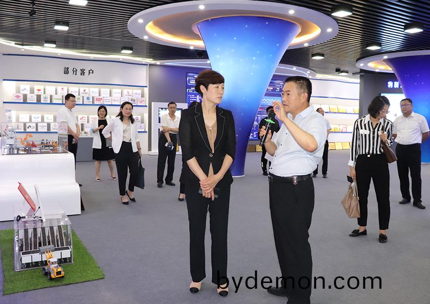 胡少华组长等一行人员在闫吉祥总经理的讲解带领下参观了博阳机械生产制造车间,对包括智能化拆垛拆袋加料生产线、移动装卸车机器人、AGV搬运出入库、立体库等系列产品有了进一步的了解。参观展厅时,对博阳机械的企业文化表达了深刻认同,说到:“在博阳人身上看到了不断积极向上的力量,深根基础、厚积薄发;博阳机械在科技研发及职工创新激励上,值得更多的企业学习借鉴”。