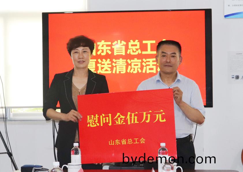 胡少华组长代表山东省总工会向安丘博阳机械制造有限公司发放价值五万元的慰问金,希望博阳机械不忘初心、砥砺前行,继续发挥好工会桥梁与纽带的作用,紧密联系党和群众,用工会助力企业发展。除此之外,并对需要帮助的困难职工进行慰问,高度赞叹其在特殊时期,始终保持饱满的精神状态,以实际行动诠释了“爱岗敬业、甘于奉献”的精神。炎炎夏日送清凉,点滴关怀暖人心,激励着博阳机械每位员工在各级工会的关心和支持下,努力工作,创造更多的经济和社会价值。