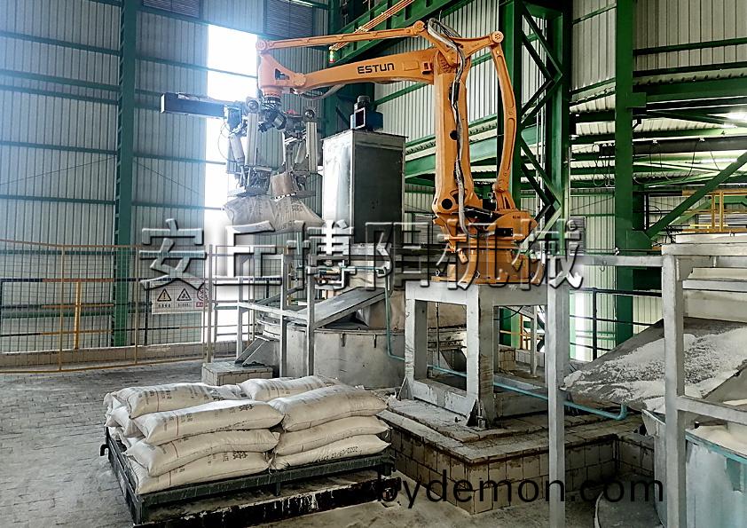 碳酸氢铵机械手自动拆包机 自动拆包机器人现场
