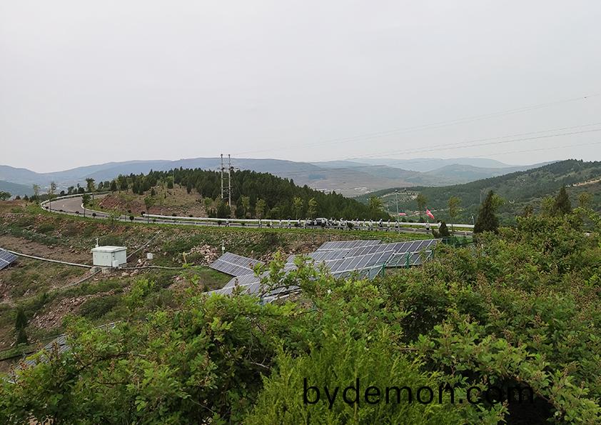 大约一个小时后,到达山顶。山风阵阵吹来,吹干了攀登过程中留下的汗水,我们放眼望去,山中所有的美景尽收眼底,满山松翠,分外动人。