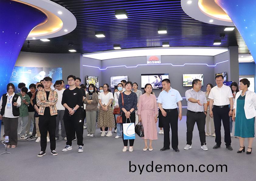 2023年5月23日上午,由安丘市人社局与潍坊学院学生处共同举办的大学生“就业大巴体验行”活动在我公司举行,安丘市人社局相关领导以及潍坊学院师生等40余人到公司企业展厅、产品线进行了参观,并在会议室进行了友好热烈的交谈。