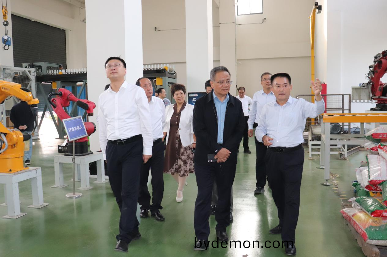 2023年10月11日,山东省港口集团党委常委、副总经理韩恩泽、安丘市市委常委、市政府副市长于浩等一行15人莅临博阳机械参观调研,安丘市发改局局长王玉平、石堆镇镇长赵锦华、博阳机械总经理闫吉祥、常务副总经理闫冰等全程陪同。