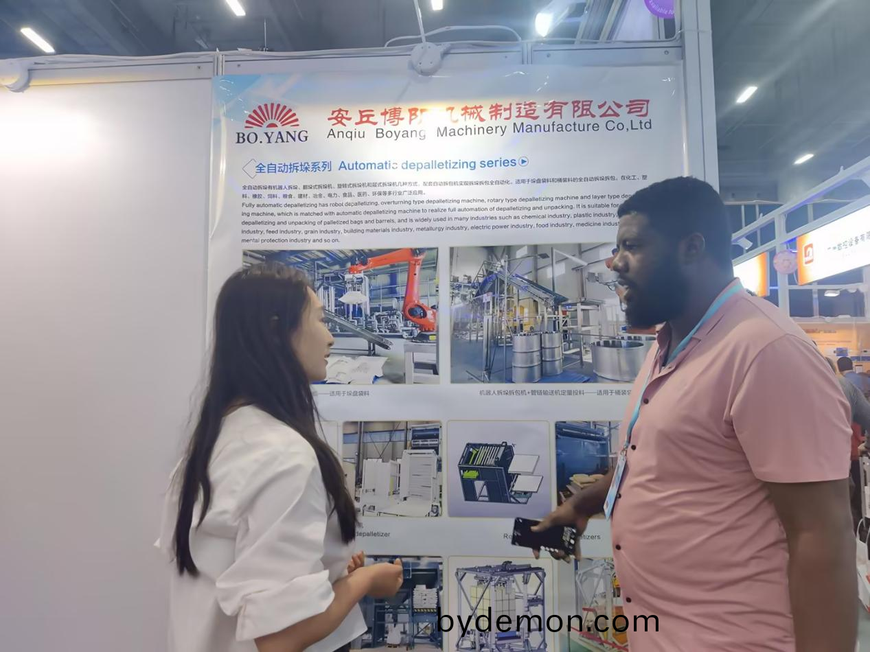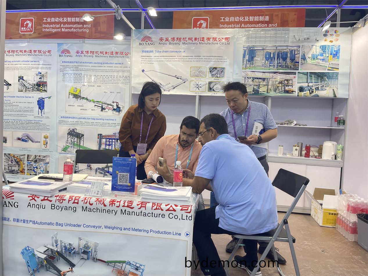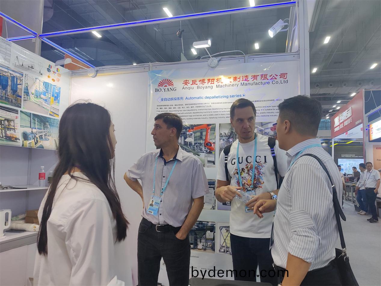 其中一位马来西亚籍客户非常认可展出的全自动装车机,在对产品进行了全面、详细了解后,感到“豁然开朗”,真是“踏破铁鞋无觅处,得来全不费工夫”,他表示博阳公司产品解决了他多年的设备采购难题。目前,已现场达成合作意向500多万美元。