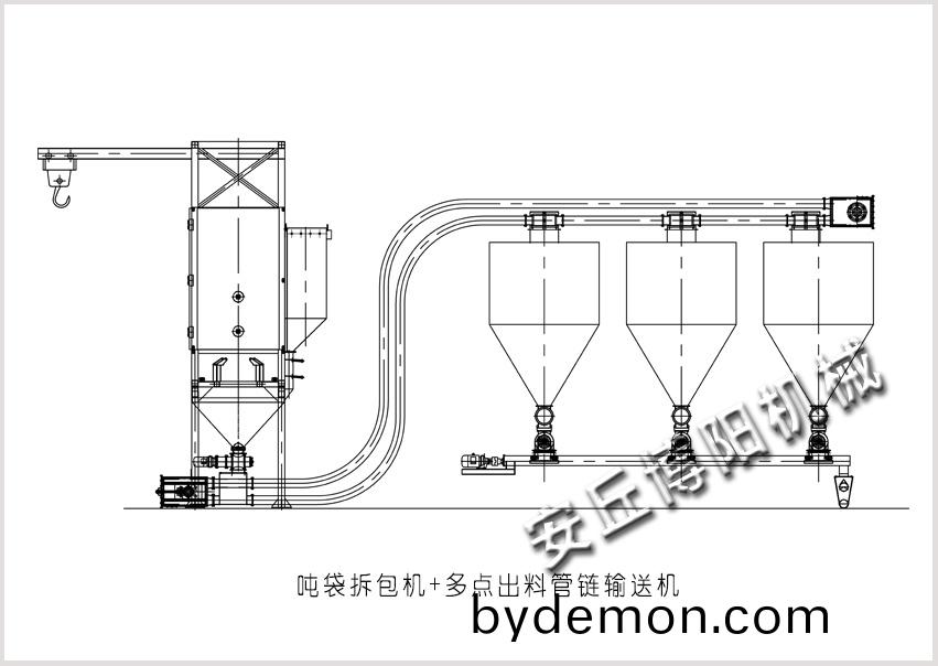 2. 粉尘控制效果好。本设备采用全封闭结构,实现同步收尘,在拆袋机工作期间,无粉尘外泄。工作现场环境指标达到国家劳动卫生标准要求。