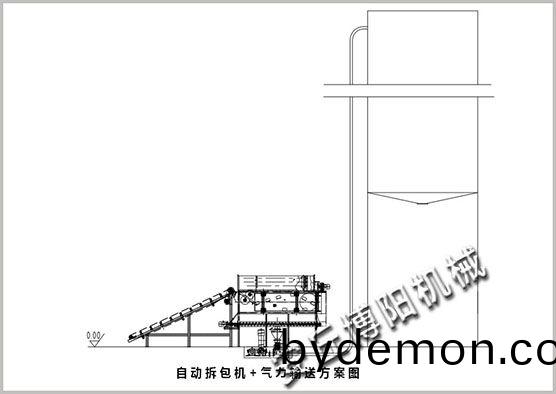 注:自动拆包机因物料性质、使用场合、出料方式等变化,其整套设备的配置、产量、材质、功率等有所变化。