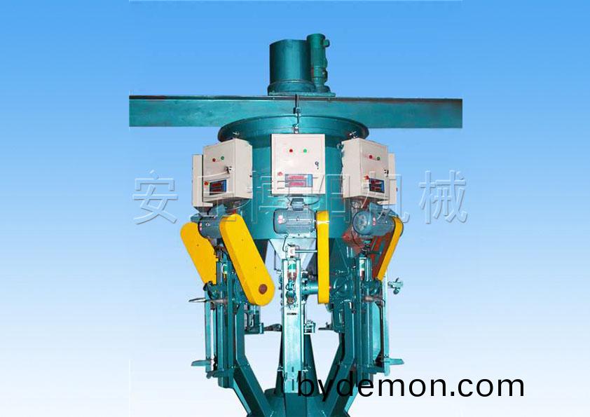 BX型回转式水泥包装机采用变频调速的主传动系统,偏心入料的回转结构,配置有无触点接近开关,上下料位测控等机电自动控制及微机自动计量装置。在操作过程中,除人工插袋外,其它如水泥袋压紧、灌装、计量闸板启闭、定点掉袋等均可自动连续完成。并具有不插袋不灌装,袋重不达到设定值不掉袋,袋子意外脱落立刻关闭闸板停止灌装等独特功能。该产品与同类产品相比,具有结构合理、计量准确、能耗低、包装能力大、维修方便等诸多优点,突出的特点是不用气动元件,就能自动实现袋口压紧、松开,闸门打开、关闭和掉袋等功能,减少许多因气动元件受损而引起的包装机故障。