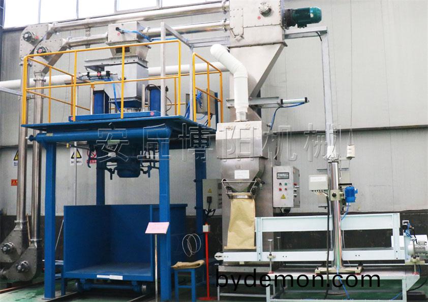 吨包包装机——适合包装各种粉状物料,物料粒度在50目以下、含气量小、流动不好的粉状物料,该机是我公司采用粉体包装技术,双级给料装置及无级变速叶片给料机构,多项填充、防堵、排尘新技术应用。具有包装精度高、工作速度快、环境污染少、先进可靠、性能优良、易于操作等优点。