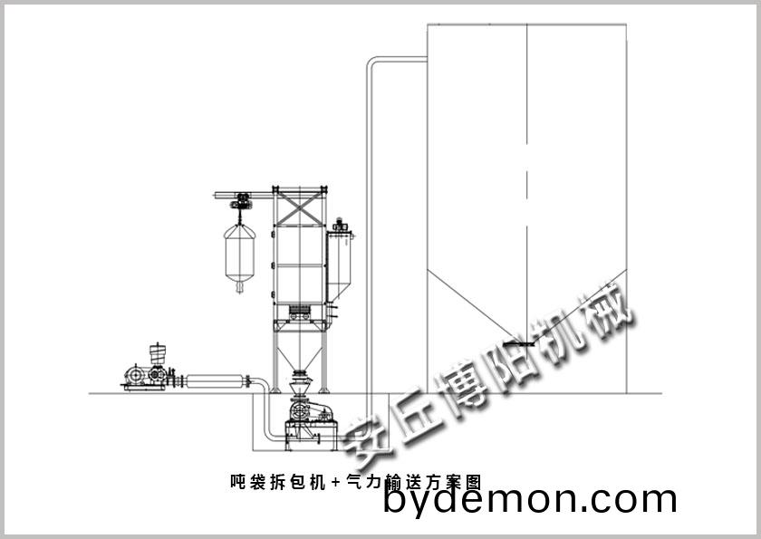 煤粉吨袋拆包机其原理是通过叉车或电动葫芦提升料袋至进料口,进行压袋。人工将包装袋下料口拆开后,打开流量控制阀和附带的滚动或拍打装置,促使包装内的物料通过自重落到下方料斗中。