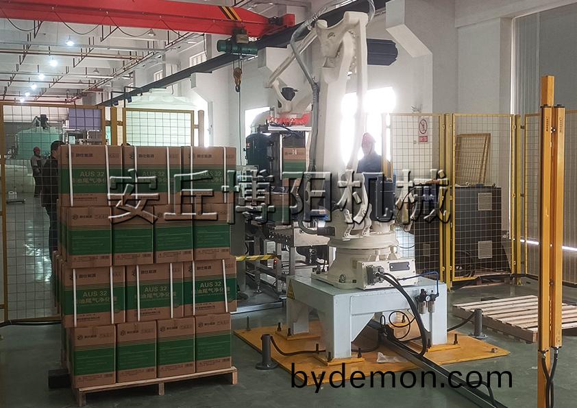 安丘博阳机械食品箱全自动码垛机采用智能化操作管理,可降低了人力成本和劳动强度,同时可以更好的防尘、防水、防潮、防晒等,所以自动码垛的机器人越来越多的应用于化工、饮料、食品、啤酒、塑料等生产企业;对各种捆袋、纸箱、袋装、罐装、啤酒箱、瓶装等各种有规则形状的包装成品都可以进行自动码垛。